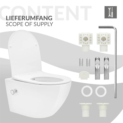 SPÜLRANDLOSES HÄNGE WC IN MODERNEM DESIGN – Mit ihrem modernen Design wertet die ECD Germany Retirade jedes Badezimmer auf. Dank ihrer zeitlosen Form kann sie in jedem Bad montiert werden. WC-Sitz und Retirade wurdenbesonders pflegeleicht gestaltet. Das WC ist Wandhängend und somit kann der Boden bequem gewischt werden. Das Zubehör für die Wandmontage im Lieferumfang enthalten sind.