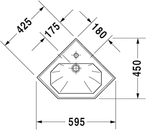 * Duravit 1930 Eck-Handwaschbecken aus Sanitärkeramik * 595x450x195mm * mit Überlauf * mit Hahnlochbank