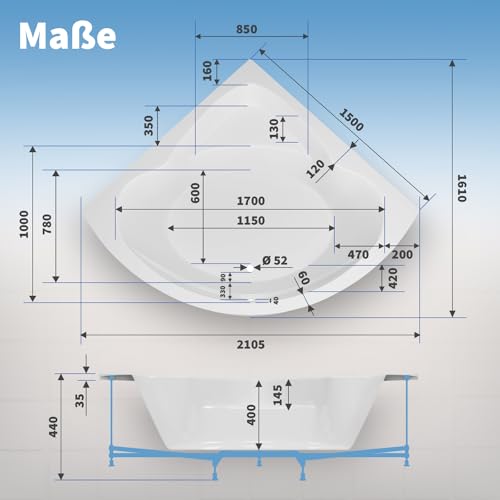 LED: Die Leuchtdiode macht Ihre Acryl Wanne en masse schöner, besonders im Dunkeln. Die LED ist eine tolle Addendum zum Arbeiten einer gemütlichen Atmosphäre beim Baden