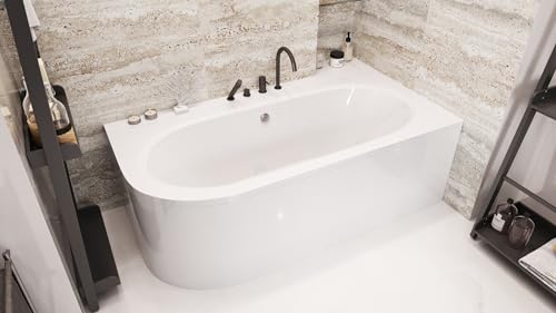 ✅🛁 𝗞𝗼𝗺𝗽𝗹𝗲𝘁𝘁-𝗦𝗲𝘁: Badewanne Avita Eckbadewanne 160×75 cm RECHTS + Schürze aus Acryl (1 Teil), Ablaufgarnitur Automatik Alcaplast, Silikon, Füße, Montagematerial.