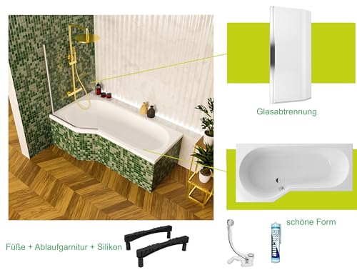 ✅🛁 𝗞𝗼𝗺𝗽𝗹𝗲𝘁𝘁-𝗦𝗲𝘁: Badewanne Be-Spot Eckbadewanne 160 x 80 cm LINKS + Glasabtrennung , Ablaufgarnitur Automatik Ab- und Überlauf, Silikon, Füße, Montagematerial.