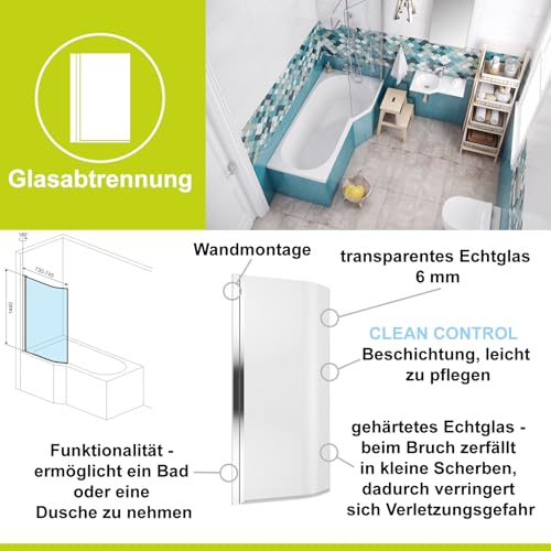 ✅🚿 𝗗𝘂𝘀𝗰𝗵𝗯𝗮𝗱𝗲𝘄𝗮𝗻𝗻𝗲: Badewanne und Dusche in einem, doppelte Funktionalität, praktische Ablösung – Badewanne mit integrierter Duschfunktion ermöglicht ein Bad oder eine Dusche zu nehmen. Die Kombination ganz Dusche und Badewanne ist massiv platzsparend und somit praktisch und bequem. Ideal für kleines Badezimmer, da kein zusätzlicher Platz für eine separate Dusche benötigt wird. Kostengünstiger als die Installation einer separaten Duschkabine. Das Glas kann gefaltet oder geschoben werden, wenn er nicht gebraucht wird, um mehr Platz zu tätig sein.