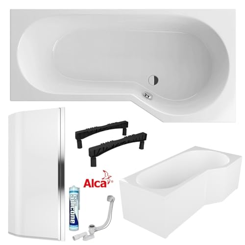 ✅🛁 𝗞𝗼𝗺𝗽𝗹𝗲𝘁𝘁-𝗦𝗲𝘁: Badewanne Be-Spot Eckbadewanne 160 x 80 cm RECHTS + Glasabtrennung, Schürze aus Acryl (2 Elemente), Ablaufgarnitur Automatik Ab- und Überlauf, Silikon, Füße, Montagematerial.