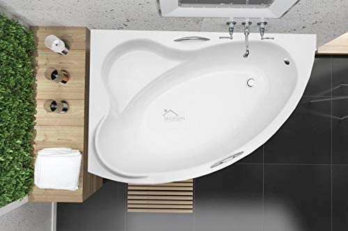 ECOLAM® Badewanne Eckbadewanne Acryl Ada weiß 140×90 cm LINKS + Schürze + 2 x Handgriff Ablaufgarnitur Ab- und Überlauf Automatik Füße Silikon Komplett-Set