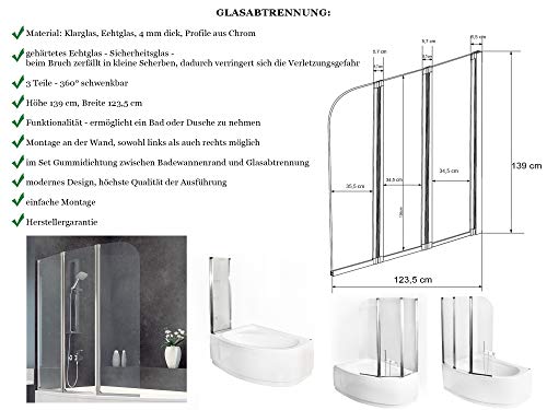 ECOLAM® Badewanne Eckbadewanne Acryl Cornea weiß 140×80 cm LINKS + Schürze + Badewannenabtrennung Ablaufgarnitur Ab- und Überlauf Automatik Füße Silikon Komplett-Set Duschbadewanne