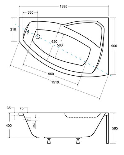 Material: Sanitäracryl mit Glasfaserverstärkung, leicht zu pflegen, vergilbt nicht, hohe Wärmespeicherfähigkeit, geringe Rutschgefahr