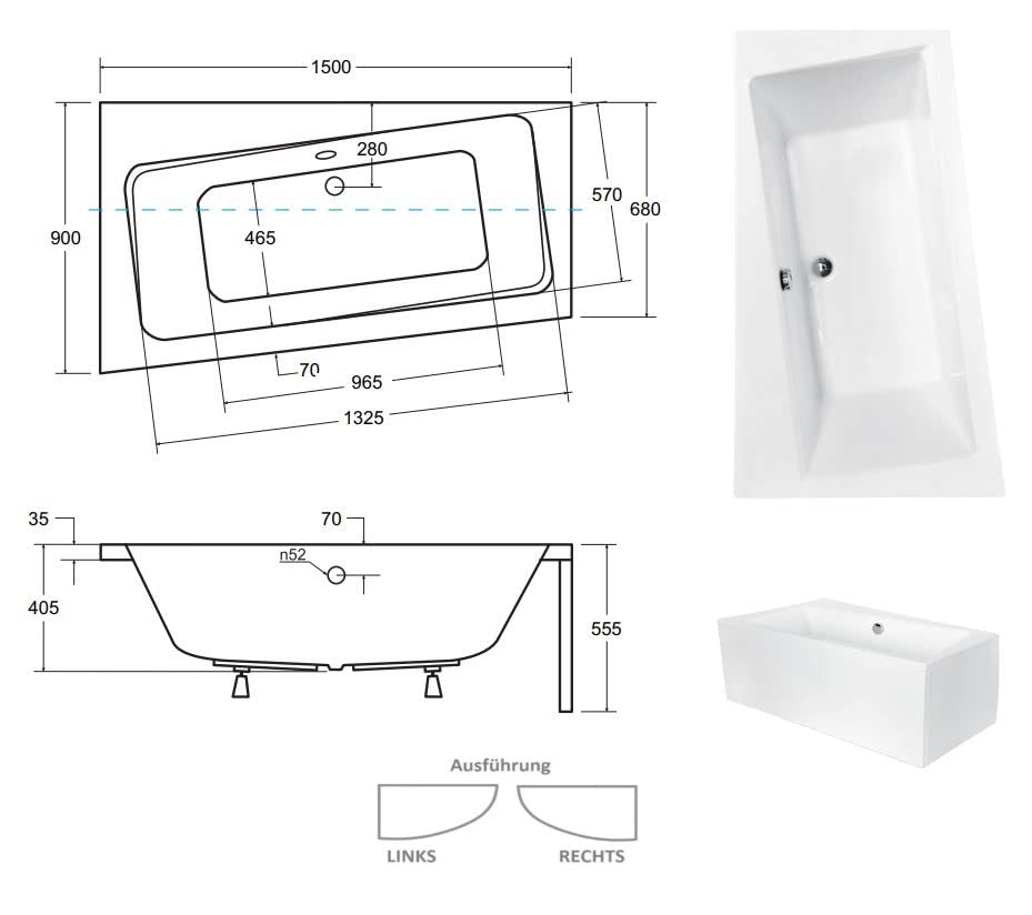 - Montage: einfache Montage, inkl. Montagematerial: Wannenanker, Füße, Ablaufgarnitur und Silikon