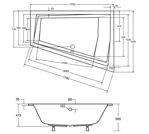 ✅ große Eckbadewanne 170×125 cm Acryl rechts PERFEKT FÜR ZWEI PERSONEN + Schürze aus Acryl, Füße, Ablaufgarnitur Automatik Alcaplast, Silikon, Füße, Montagematerial