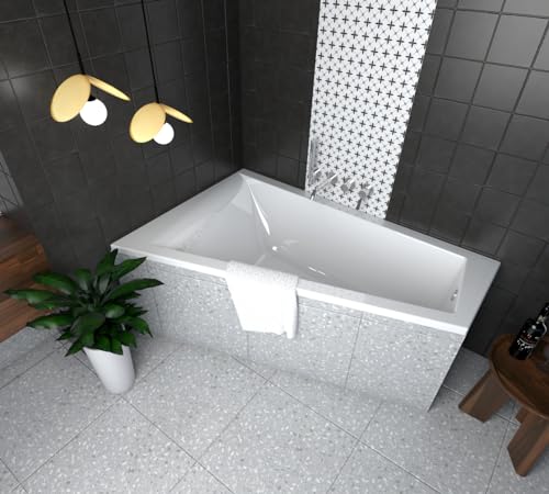 🛁 𝗞𝗼𝗺𝗽𝗹𝗲𝘁𝘁-𝗦𝗲𝘁: Badewanne RITA 160x100cm LINKS Trapezwanne + universelle Styroporverkleidung + Ablaufgarnitur Automatik Alcaplast, Silikon, Füße, Montagematerial