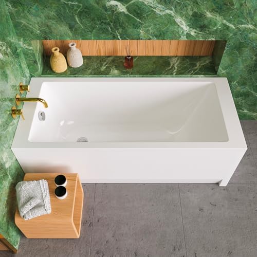 ✅🛁 𝗞𝗼𝗺𝗽𝗹𝗲𝘁𝘁-𝗦𝗲𝘁: Badewanne TAMI Rechteckbadewanne 170 x 70 cm + Schürze allesamt Acryl (2 Elemente), Ablaufgarnitur Automatik Alcaplast, Silikon, Füße, Montagematerial.