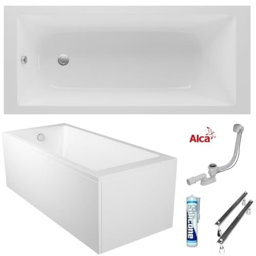 ✅🛁 𝗞𝗼𝗺𝗽𝗹𝗲𝘁𝘁-𝗦𝗲𝘁: große Badewanne TAMI Rechteckbadewanne 190 x 90 cm + Schürze jeder Acryl (2 Elemente), Ablaufgarnitur Automatik Alcaplast, Silikon, Füße, Montagematerial.