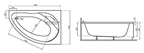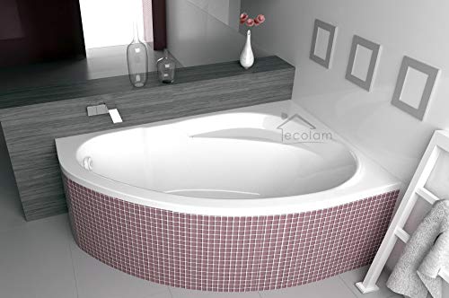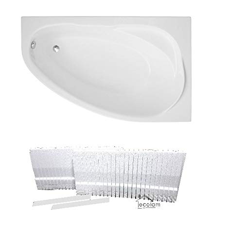 ECOLAM® Badewanne Wanne Eckwanne Eckbadewanne Acryl weiß Marea Polimat 150×100 cm RECHTS+ Styroporverkleidung 1.040 Ablaufgarnitur Ab- und Überlauf Automatik Füße Silikon Komplett-Set