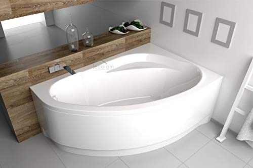 ECOLAM® Badewanne Wanne Eckwanne Eckbadewanne Acryl weiß Marea Polimat 160×100 cm RECHTS+ Schürze Ablaufgarnitur Ab- und Überlauf Automatik Füße Silikon Komplett-Set