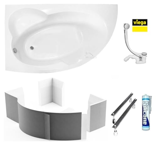 ✅ Badewanne Carmen Eckbadewanne 170×100 cm + Wannenträger, Ablaufgarnitur Automatik Alcaplast, Silikon, Füße, Montagematerial