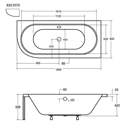 ECOLAM® Badewanne Wanne Eckwanne Eckbadewanne für Zwei Modern Design Acryl weiß Avita 180×80 cm RECHTS + Styroporverkleidung Ablaufgarnitur Ab- und Überlauf Automatik Füße Silikon Komplett-Set