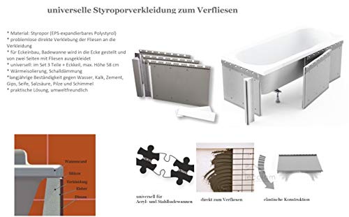 ✅ universelle Styroporverkleidung zum Verfliesen: problemlose direkte Verklebung der Fliesen an die Verkleidung, Wärmeisolierung, Schalldämmung, langjährige Beständigkeit gegen Wasser, Kalk, Zement, Gips, Seife, Salzsäure, Pilze weiterhin Schimmel; immersiv: angebracht zugunsten rechteckige Badewannen 170 + 90 x 58 cm ✅ Abwicklung in der Mitte – aufrichtig zugunsten 2 Personen
