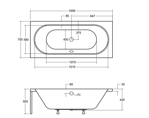 Material: Sanitäracryl mit Glasfaserverstärkung, leicht zu pflegen, vergilbt nicht, hohe Wärmespeicherfähigkeit, geringe Rutschgefahr