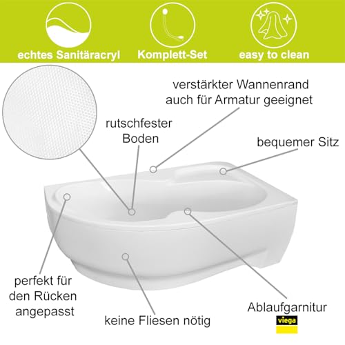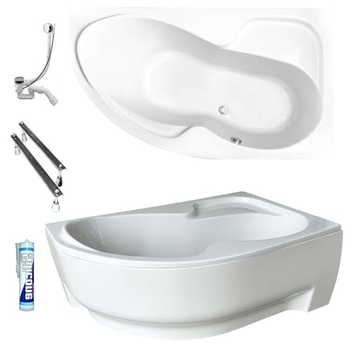 ✅🛁 𝗞𝗼𝗺𝗽𝗹𝗲𝘁𝘁-𝗦𝗲𝘁: Badewanne WELA Eckbadewanne 170×100 cm RECHTS + Schürze aus Acryl (1 Teil), Ablaufgarnitur Automatik, Silikon, Füße, Montagematerial.