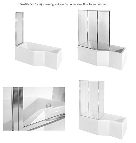 ✅🚿 𝗗𝘂𝘀𝗰𝗵𝗯𝗮𝗱𝗲𝘄𝗮𝗻𝗻𝗲: Badewanne und Dusche in einem, doppelte Funktionalität, praktische Ablösung – Badewanne mit integrierter Duschfunktion ermöglicht ein Bad oder eine Dusche zu nehmen. Die Kombination alle Dusche und Badewanne ist außergewöhnlich platzsparend und dann praktisch und bequem. Ideal für kleines Badezimmer, da kein zusätzlicher Platz für eine separate Dusche benötigt wird. Kostengünstiger denn die Installation einer separaten Duschkabine. Das Glas kann gefaltet oder geschoben werden, wenn er nicht gebraucht wird, um mehr Platz zu bestellen.