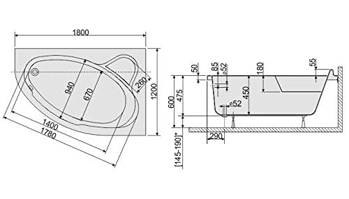 ✅ große Badewanne Eckwanne Comfort 180×120 cm RECHTS + Ablaufgarnitur Automatik Alcaplast, Silikon, Füße, Montagematerial