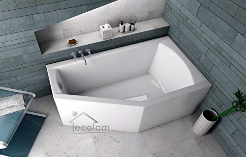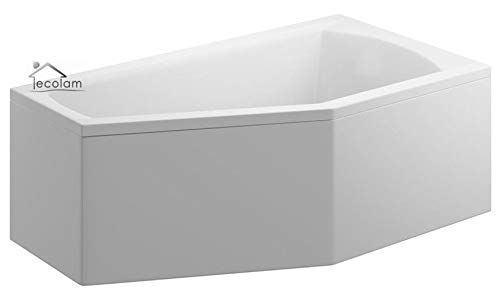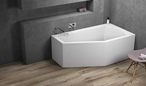 ECOLAM® raumsparende Badewanne Eckbadewanne Acryl Selena Polimat weiß 160×90 cm RECHTS + Schürze Ablaufgarnitur Ab- und Überlauf Automatik Füße Silikon Komplett-Set