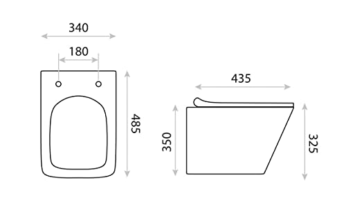 • Toilette: Höhe: 35 cm, Breite 34 cm, Schlund: 48,5 cm