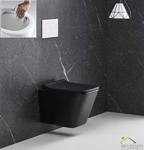 ECOLAM® Set WC Wand Vorwandelement Toilette Lago schwarz matt black Clean on spüllrandlos hängend Tiefspül + WC-Sitz Soft Close + Betätigungsplatte