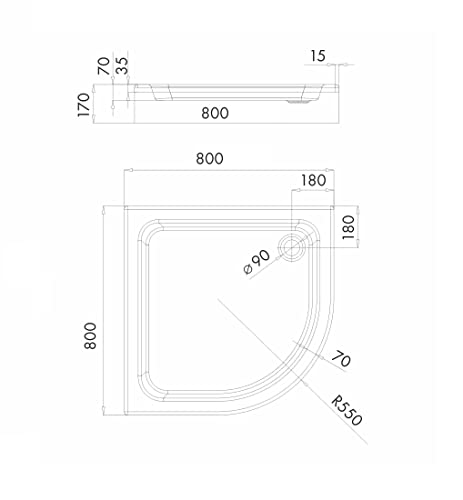 ECOLAM® stabile Duschwanne Duschtasse Grando Plus Viertelkreis 80×80 x 17 cm Tiefe 7 cm R55 Acryl weiß Styroporunterseite + Siphon