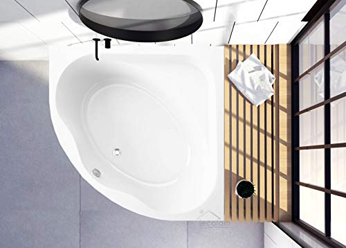 ECOLAM® symmetrische Badewanne Eckbadewanne Standard Polimat Acryl weiß 150×150 cm + Schürze Ablaufgarnitur Ab- und Überlauf Automatik Füße Silikon Komplett-Set