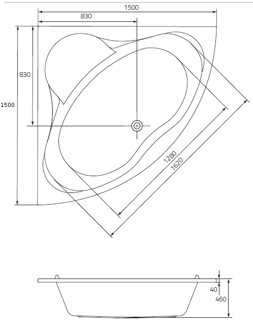 ECOLAM® symmetrische Badewanne Eckbadewanne Venus Acryl weiß 150×150 cm + Ablaufgarnitur Ab- und Überlauf Automatik Füße Silikon Komplett-Set
