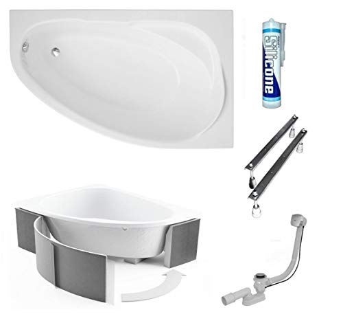 ✅ Badewanne Eckwanne Mia 140×140 cm + Wannenträger, Ablaufgarnitur Automatik Alcaplast, Silikon, Füße, Montagematerial