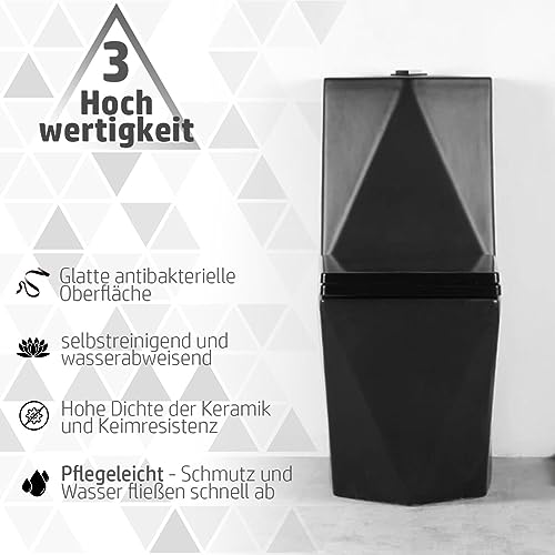 KOMFORTABLES DESIGN: Mit geformtem Prismoid-Design aus Diamantschliff-Keramik ist die minimalistische Toilette sowohl für große Badezimmer und Gäste-WCs als auch für Luxus- und Kurhotels sowie Restaurants geeignet. Das einteilige WC mit eingebautem Spülkasten kann perfekt mit dem Waschbecken aus der gleichen Nachfolge kombiniert werden.