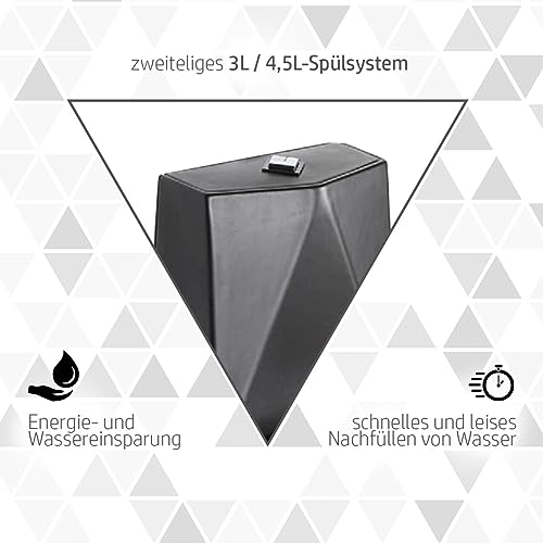 EFFIZIENZ: Sitz mit Absenkautomatik SoftClose-Ebenbild; schnelles und leises Nachfüllen von Wasser und zweiteliges 3 / 4,5 Liter-Spülsystem; Energie- und Wassereinsparung; starke Spülkraft durch breite Rohre.