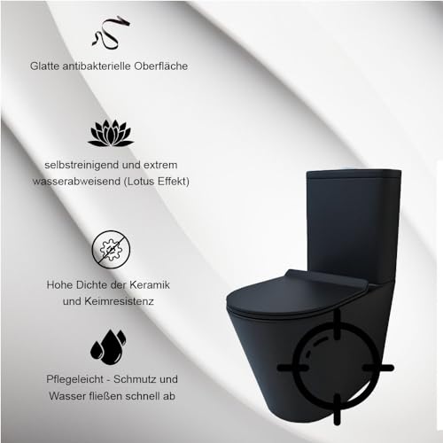 KOMFORTABLES DESIGN – SCHLICHTES ROBUSTES GEBILDE: Minimalistisches zweiteiliges WC und flache Wasserkasten geeignet für große und kleine Badezimmer oder Gäste WC, mit geräumiger Rückenlehne, ideal auch für ältere oder behinderte Menschen.