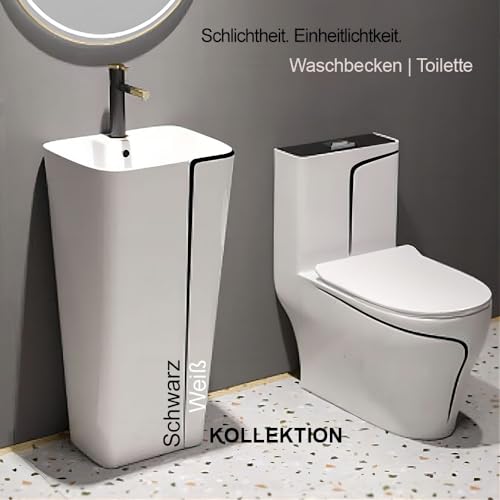 KOMFORTABLES DESIGN: Minimalistisches, einteiliges WC mit Spülkasten, im Rahmen sowohl für große Badezimmer und Gäste-WCs wie aka für Luxus- und Kurhotels sowie Restaurants. Mit geräumiger Rückenlehne und praktischen Armlehnen ist es ideal für ältere oder behinderte Menschen. Das WC kann mit dem Waschbecken nicht mehr da der gleichen Abfolge kombiniert werden.