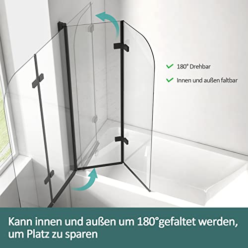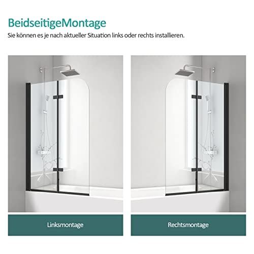 Badewanne Duschwand Größe: Duschwand anstatt Badewanne 110 x 140 cm Schwarz (B x H), Wandversatz 10 mm. Die 2-teilig Duschwand Badewanne Faltbar ist klappbar und bietet Spritzschutz sowie Nass- und Trockentrennung.