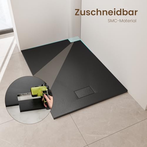EMKE Duschwanne 120×90 cm Duschtasse Flach Anti-Rutsch SMC Duschwanne Zuschneidbar, Duschwannen Duschtassen Schwarz