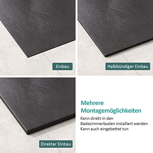 SMC Duschwanne Schwarz: Duschwanne 120 x 90 x 3 cm, Hergestellt aus robustem SMC (Harz, Glasfaser, Calciumcarbonat) für außergewöhnliche Haltbarkeit und Widerstandsfähigkeit gegen Verformung und Beschädigung.