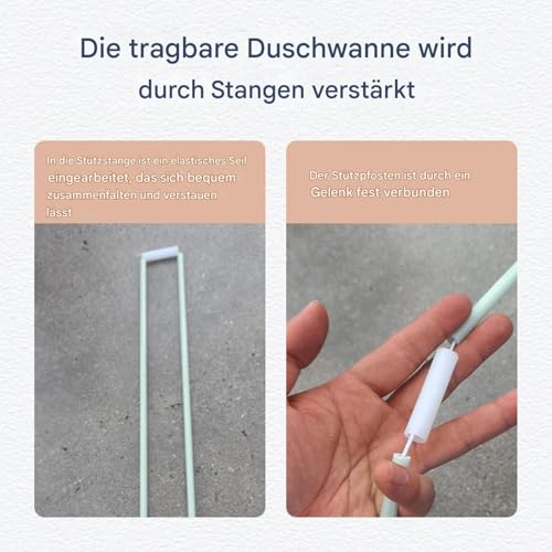 Stabile Stützstruktur: Diese tragbare Duschpfanne abwenden ein Kollapsrisiko oder eine Verformung und verfügt über eine stabile Installation mit festen Stangen,die aus Seiten gefestigt stützen