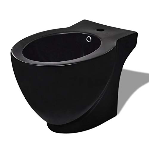 Festnight Stand-Toilette/WC mit Soft WC Sitz + Stand-Bidet Bodenstehend Bidet & Toilette Set aus Keramik Schwarz
