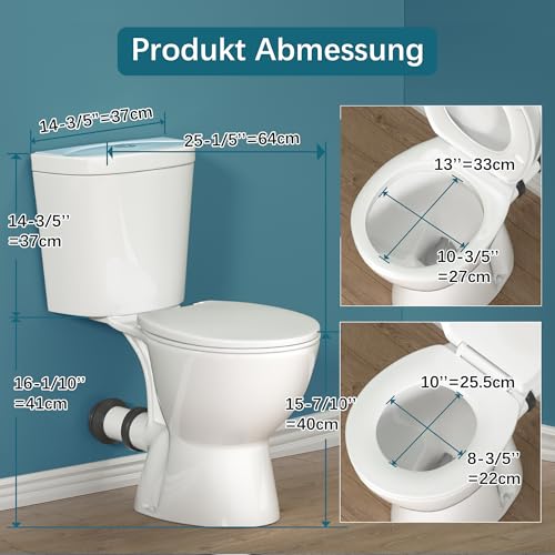 16“ Komforthöhe Toilette : 16 Zoll Höhe ist höher als normale Standtoiletten, diese ergonomisch gestaltete bietet maximalen Komfort und Bequemlichkeit. 16 Zoll als Stuhlhöhe, kann Stress auf Gelenke, Wirbelsäule und Muskeln reduziert. Hohe Toilette sehr geeignet für Senioren, schwangere Frau und Menschen mit Mobilitätsproblemen.