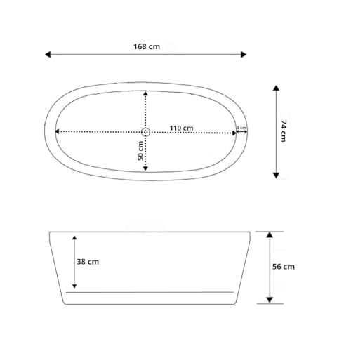 FREESTANDING BADEWANNE MODELL „OLIVIA“ 168 x 74 cm