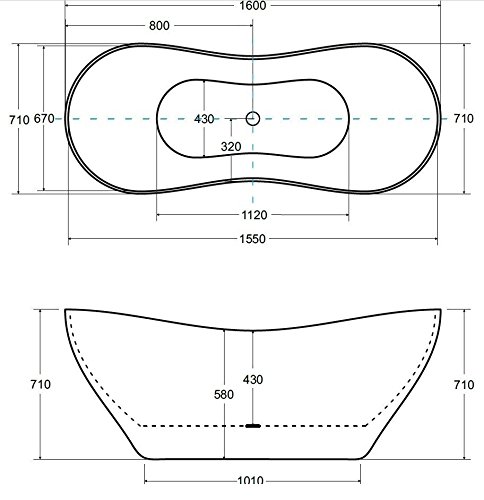 freistehende Badewanne aus Mineralguss 160x70x71 cm weiss Design VYIA