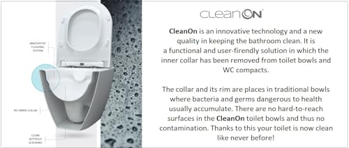 Innovative Technologie: Unsere Wandschüssel verwendet die fortschrittliche CleanOn-Technologie, die eine effektive Reinigung aller Innenflächen gewährleistet und die Toilette perfekt sauber und hygienisch hält.