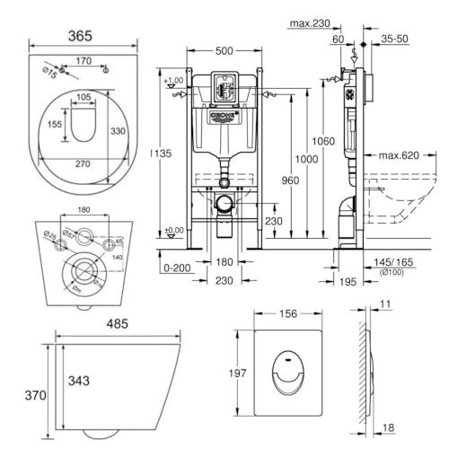Ein komplettes Design Set bestehend allesamt einem Grohe Infinitio Spülrandloses Hänge-WC und einem Softclose-WC-Sitz zugunsten einen puristischen und modernen Look in Ihrem Badezimmer. Das WC verfügt unter Einsatz von die AquaCeramic-Technologie, die Verschmutzungen verhindert und die Reinigung erleichtert