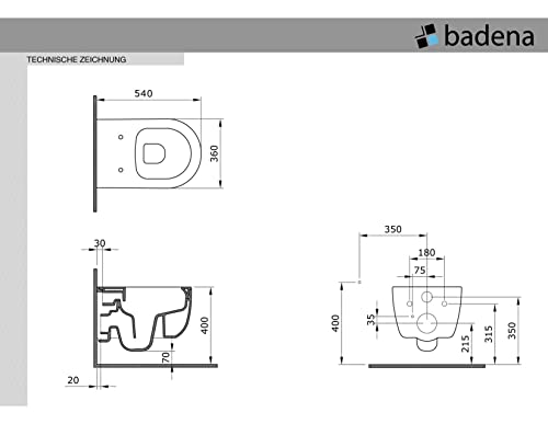 LIEFERUMFANG: 1x GEBERIT UP320 Spülkasten Komplettset I 1x Sigma30 Betätigungsplatte schwarz matt I 1x Spülrandloses Hänge-WC schwarz matt der Marke Badena inkl. Softclose Ultra Slim Wc-Sitz I 1x Schallschutz I Verschraubungsmaterial