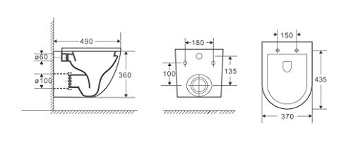WC Grad: 490 mm x 370 mm x 360 mm (ohne Sitz und Deckel) Verdeckte und nicht sichtbare Befestigung von oben. Somit ein Eyecatcher in Punkto Design und nicht zuletzt Hygiene.