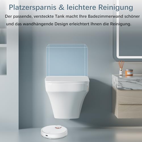 【 Platzsparend →Tankless & Rimless Toilette 】Die Findepot wandhängende Toilettenschüssel ist sogar kleiner als die eng gekoppelte einteilige Toilette, eine kleine Toilette ist sehr geeignet für Wohnung und Garderobe.