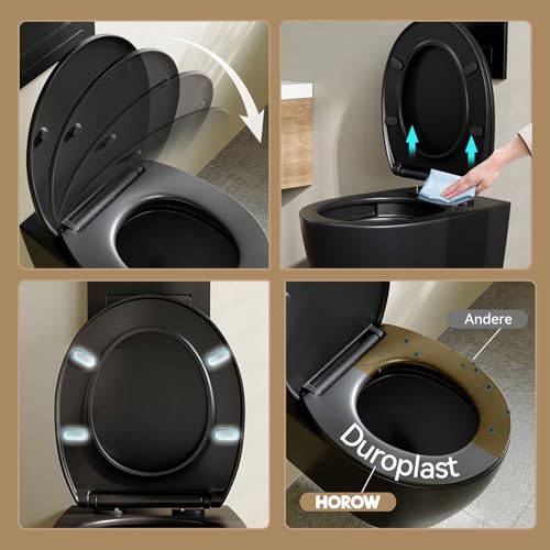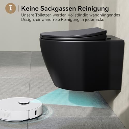 WC Schwarz, Toilette Schwarz, Hänge WC Spülrandlos Toilette, Toiletten für Gäste-WC, WC Schüssel aus Keramik, WC Sitz mit Absenkautomatik, Einloch Superspin Spülung Wand WC, Kloschüssel 52×37×34,5cm