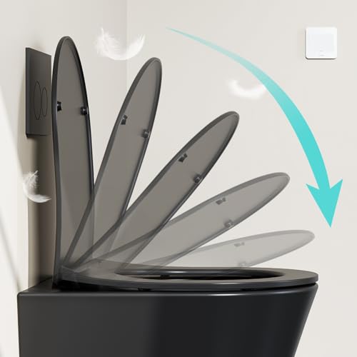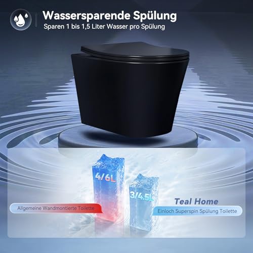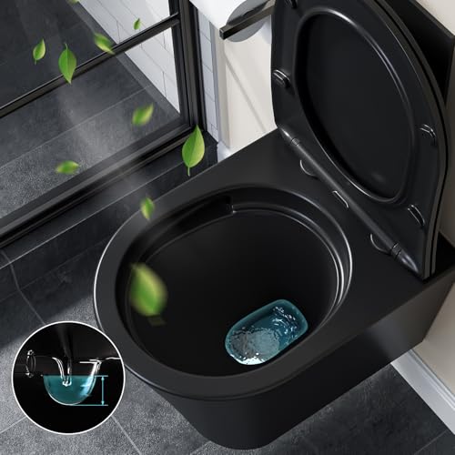 STILVOLLES DESIGN: Mit ihrem modernen und edlen Aussehen ist unsere schwarze wandhängende Bedürfnisanstalt ein Blickfang in jedem Badezimmer. Die zeitlose Farbe lässt sich leicht mit jedem Einrichtungsstil herleiten und verleiht Ihrem Badezimmer einen Quäntchen von Eleganz.